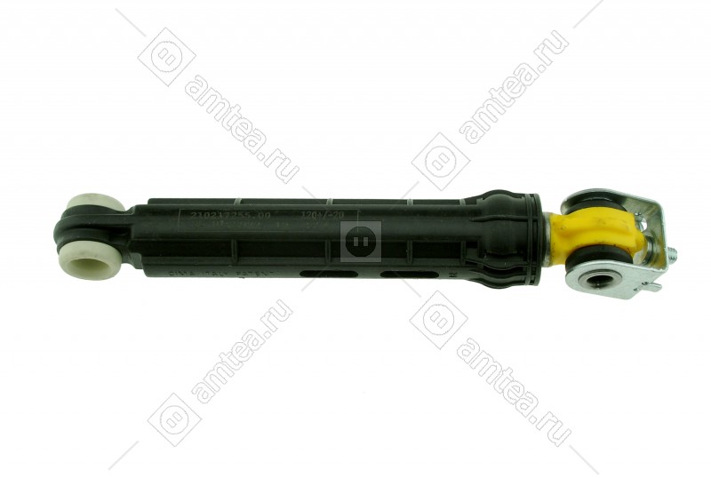 Амортизатор с усилием сжатия - растяжения 120N (ньютонов). Расстояние между центрами отверстий в сжатом состоянии 165 мм. Внутренний диаметр металлической втулки крепления - 8 мм, внутренний диаметр резиновой втулки крепления - 13 мм.