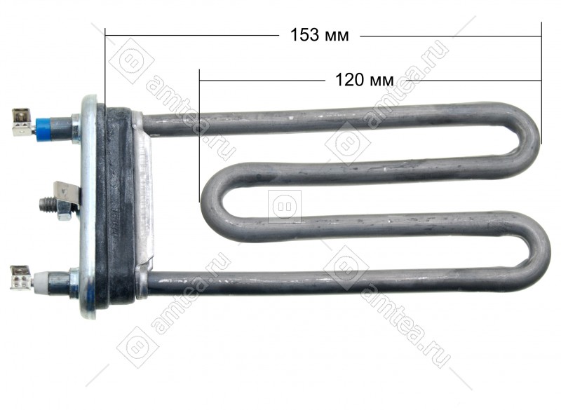 ТЭН (нагреватель) L=155 мм, 1750W, без отверстия стиральной машины Stinol, Bosch, Siemens, Indesit, Siltal, Rolsen